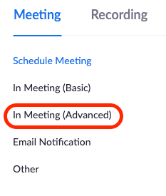 • Select the “Meeting” button and then the “In Meeting (Advanced)” tab.